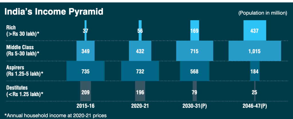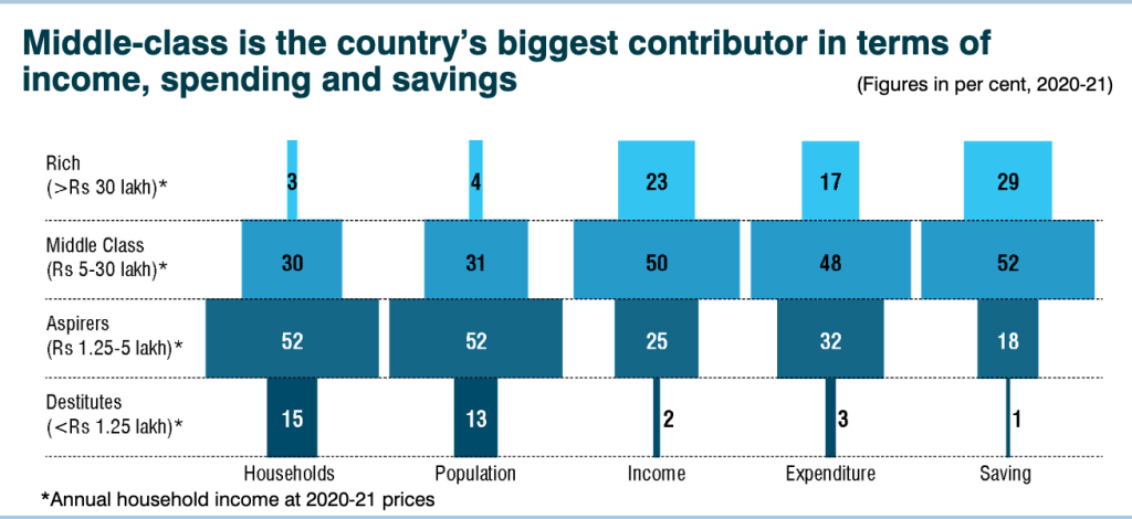 The report suggests that the middle class is the country’s biggest driver of income, spending, and savings. The rise of India’s middle class is real, and it is this section of the society that is shaping the modern Indian economy.